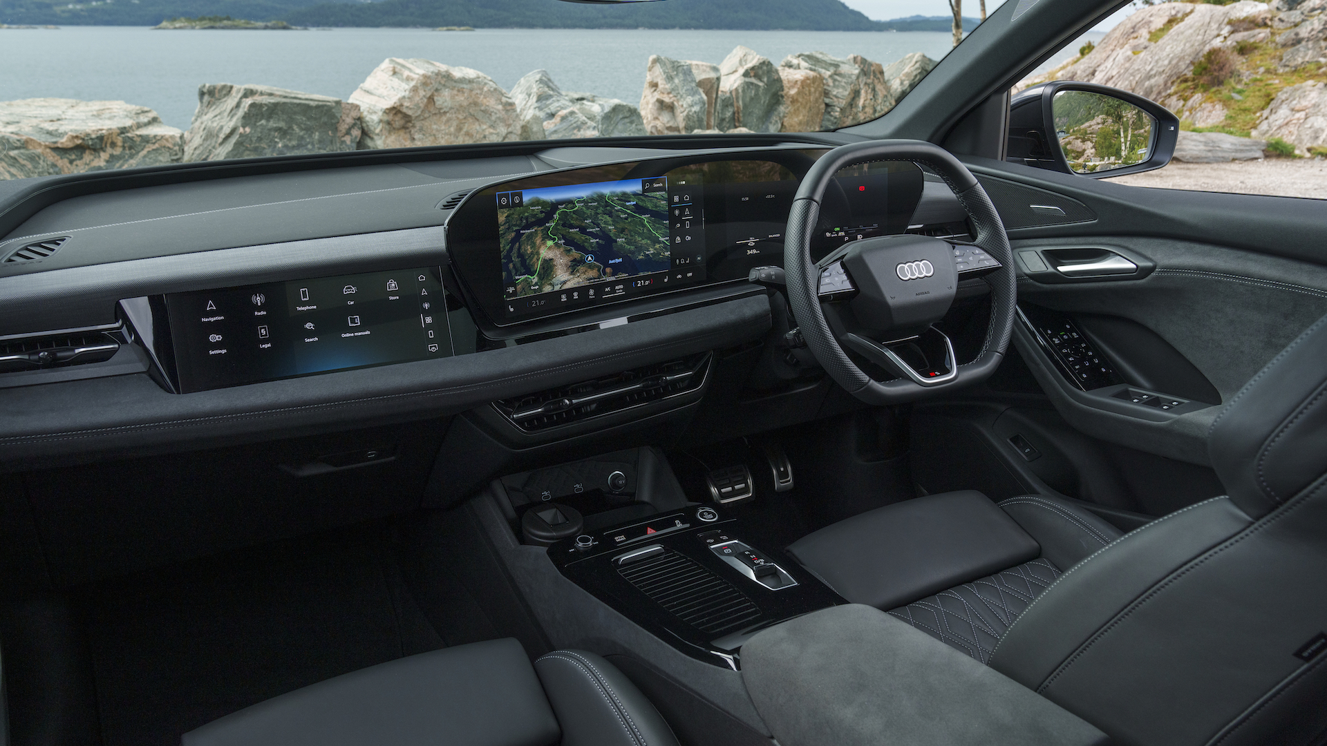 The top of the dashboard is dominated by screens. One seamless sheet of glass covers both an 11.9-inch display for driver information and a 14.5-inch infotainment screen, though unlike some Audis of old you don’t get a rotary controller to interact with this - it’s touchscreen or voice commands only. Optionally available is a further 10.9-inch display for the front seat passenger so they can control media or view data more easily.