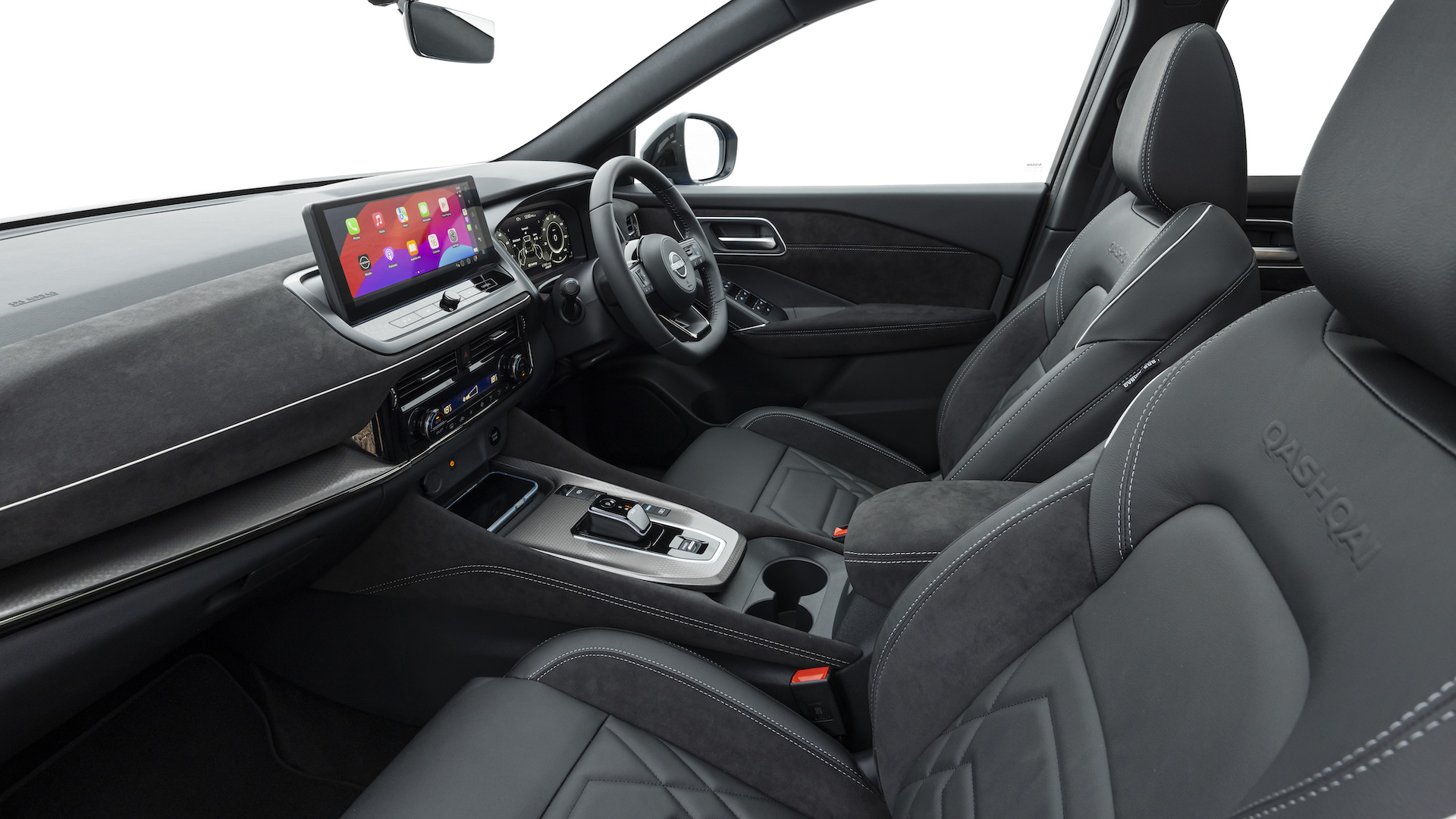 Inside, the Qashqai’s been given a lift thanks to a new Google-powered infotainment system, some extra tech, and high-spec models feel plusher thanks to a swathe of Alcantara upholstery across the dashboard.